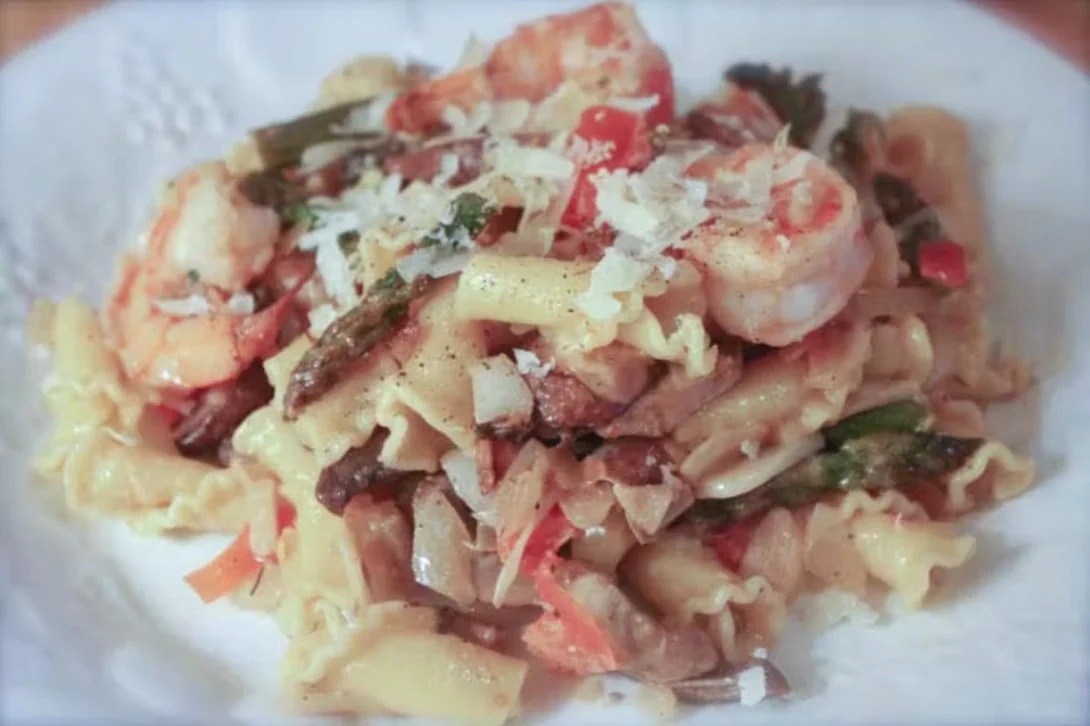 SHRIMP PASTA MEDLEY WITH MUSHROOM & ASPARAGUS